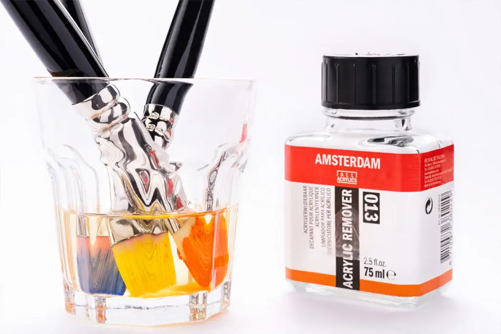 Med Amsterdam Acrylic Remover kan man løse opp akrylmaling, selv etter at den har tørket inn i busten.
