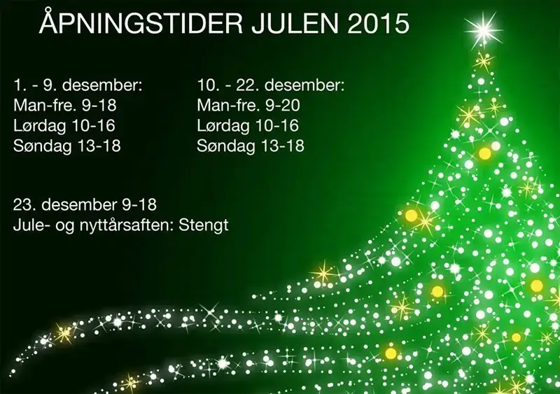 Våre åpningstider julen 2015:
